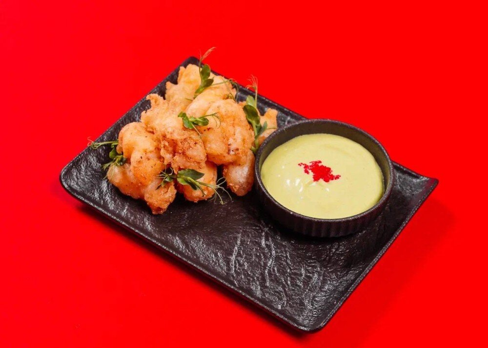 Креветки темпура с соусом васаби